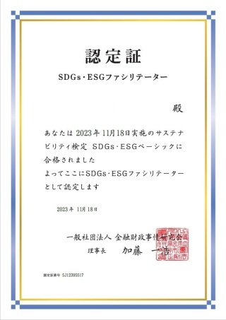 ホーム › お知らせ › SDGs宣言に伴い、当社の宣言内容を実現すべく担当者が資格を取得いたしました。